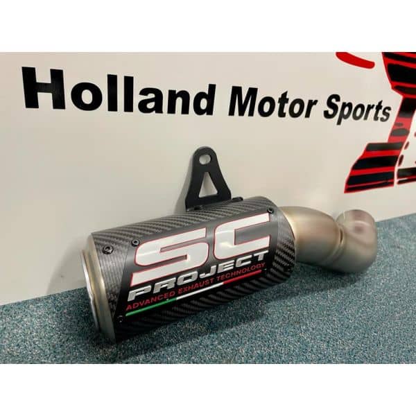 SC Project CR-T carbon demper met een titanium link pipe K25-T36CR.
