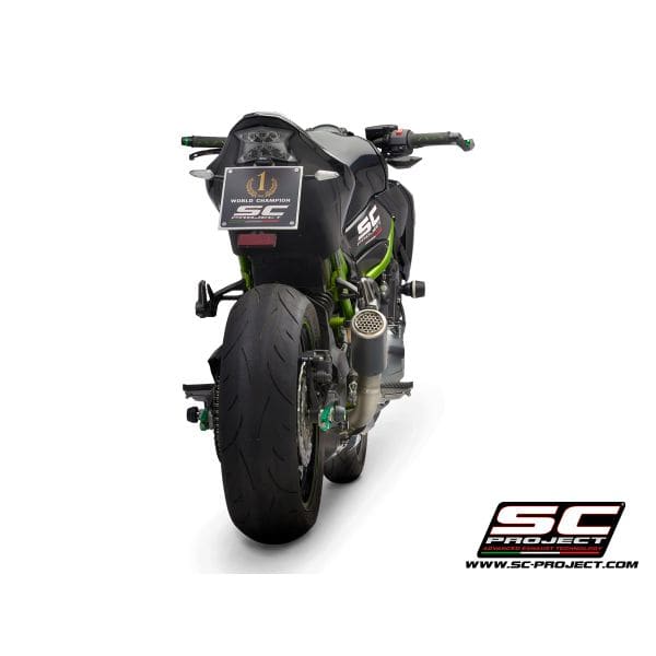 The CR-T muffler, the multiple MotoGP and Moto2 World Champion, makes the Kawasaki Z900 more aggressive than ever. Its racing look, aeronautical-derived materials such as titanium and carbon fibre, Bracket and fitting welds with T.I.G. technology and insert bushings machined from solid by CNC machines, make it the best on the market for your Kawasaki.The titanium flame breaker mesh, born from the racing experience, makes the silencer of your Z900 even more precious. The sound is as extreme as possible. The silencer is EURO4 approved. Available with an external body in both carbon and titanium and with a large carbon protection made in autoclave, which completely takes the place of the original.