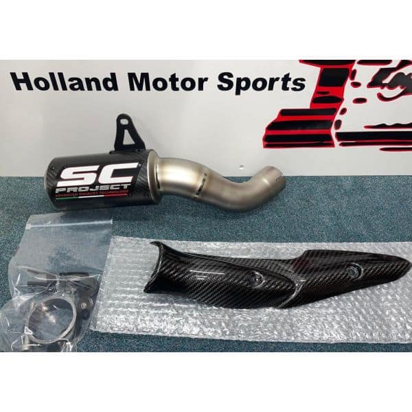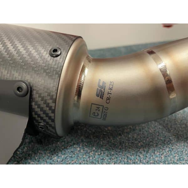 SC Project CR-T carbon demper met een titanium link pipe K25-T36CR.
