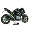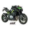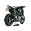 The S1 muffler, born directly from Superbike racing, is built with a conical titanium body and a matt carbon fibre end cap, welded to the all-titanium manifold specially created to be mounted on the Kawasaki Z900. Its slim shape highlights the muscles of the green Kawasaki. The sound generated on the Kawasaki four-cylinder is particularly sharp and engaging. The silencer is EURO approved. It comes with a large autoclave made carbon protection, which completely replaces the original. It can also be supplied painted matt black with special heat-resistant ceramic paints.