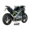 The S1 muffler, born directly from Superbike racing, is built with a conical titanium body and a matt carbon fibre end cap, welded to the all-titanium manifold specially created to be mounted on the Kawasaki Z900. Its slim shape highlights the muscles of the green Kawasaki. The sound generated on the Kawasaki four-cylinder is particularly sharp and engaging. The silencer is EURO4 approved. It comes with a large autoclave made carbon protection, which completely replaces the original. It can also be supplied painted matt black with special heat-resistant ceramic paints.