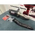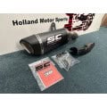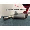 Everything about this silencer has been developed to offer the highest quality and performance experience: the best materials with advanced production processes like handcrafted TIG weldings, the asymmetrical outlet obtained with hydroforming technology and finally the unique and sporty carbon fibre end cap.