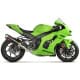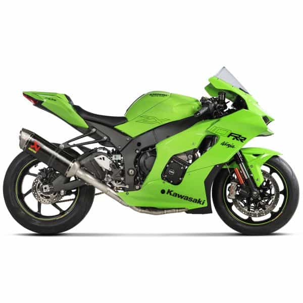 This is a complete stainless-steel exhaust system with a beautifully finished carbon-fibre muffler outer sleeve and high-grade titanium endcap. With the Racing Line, power and torque levels have been increased by an extra 8.2 Kw (11.1 HP) and 13.4 Nm, recorded on Akrapovič’s in-house dyno with back-to-back tests of the Kawasaki with a Racing Line (Titanium) exhaust and a Ninja ZX-10RR with a standard stock exhaust system. Coupled with linear delivery right across the entire rev range, it comes with a hexagonal muffler – including titanium inner parts to reduce weight – and a deep sporty sound. An option to add an aluminium muffler bracket is also available to complement the beautiful finish of this system. The bike’s ECU must be remapped when the Racing Line system is installed.