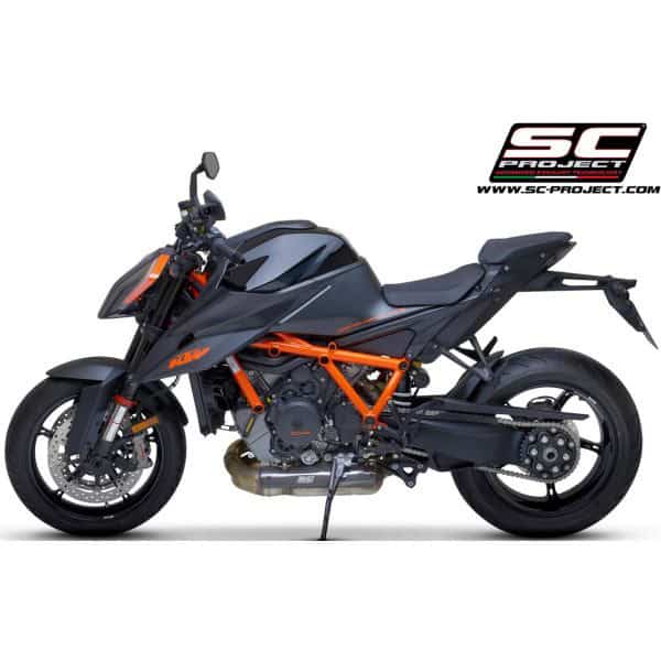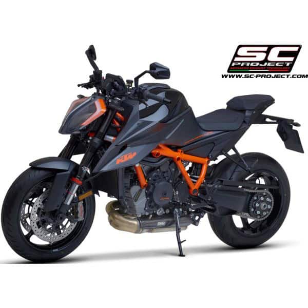 The R&D department of SC-Project has realized for KTM 1290 SUPER DUKE R a carbon fiber heat protection with shiny Twill weaving compatible with motorcycle’s original headers. La protection is compatible the entire range of SC-Project mufflers and the original mufller. The carbon protection gives the bike a Racing style, typical of the major MotoGp and WSBK competitions. To embellish the design of the protection is applied a Titanium insert with the lasered Logo. The kit comes with everything you need for mounting, making this product completely Plug & Play.