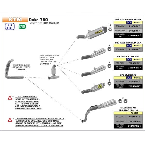 Arrow katvervanger 71719MI voor de volgende KTM modellen:
