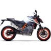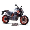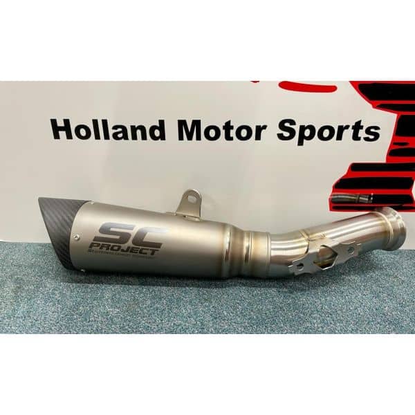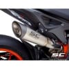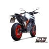 The S1 muffler represents for SC-Project the perfect combination of lightness and performance without compromise. Its conical shape with taut and essential lines make the S1 silencer fascinating giving outburst to Your KTM 890 Duke. Born from the experience of the racing department on the circuits of the WSBK Championship, the silencer has a Titanium body with Carbon end cap with a special sound-absorbing material that resists high temperatures. To make it unique and unmistakable our Technicians have used the best production processes: brackets and fittings welded with T.I.G. technology, the insert bushings in titanium made in CNC and lasered Logo. From the high and powerful sound the S1 silencer will make the Sound of Your Moto unique. In the kit is included the carbon heat protection.