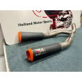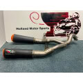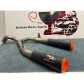 RS22-V is a 250mm twin exit system with orange tips. The finish option is black ceramic.