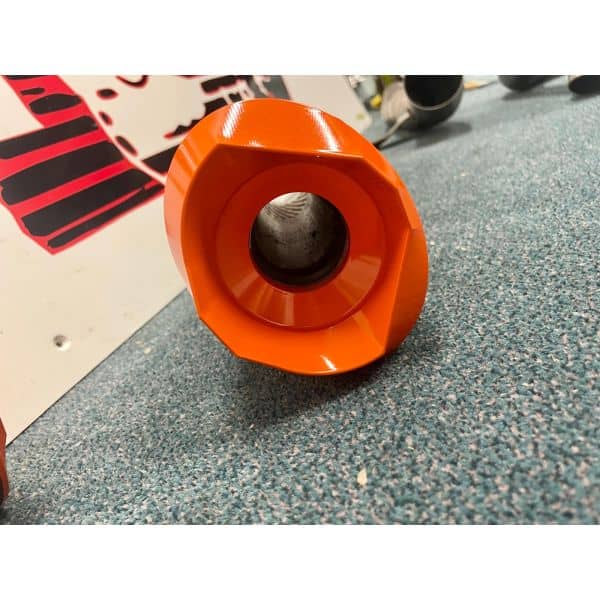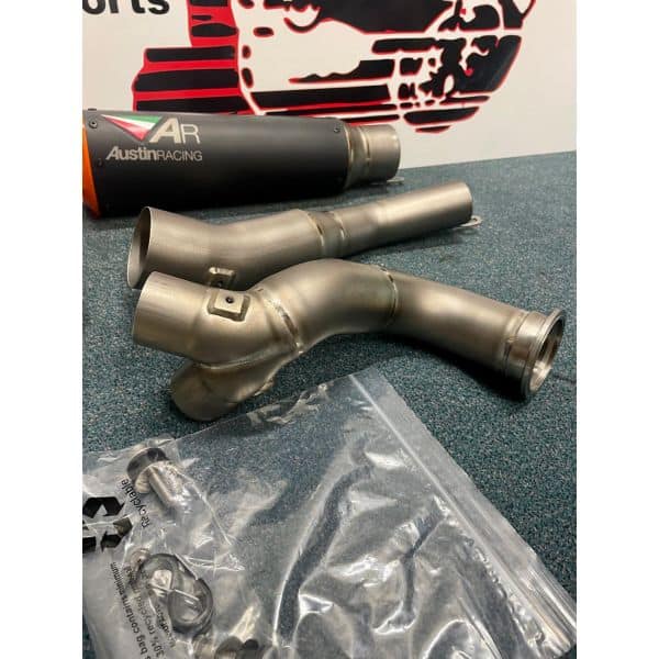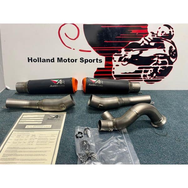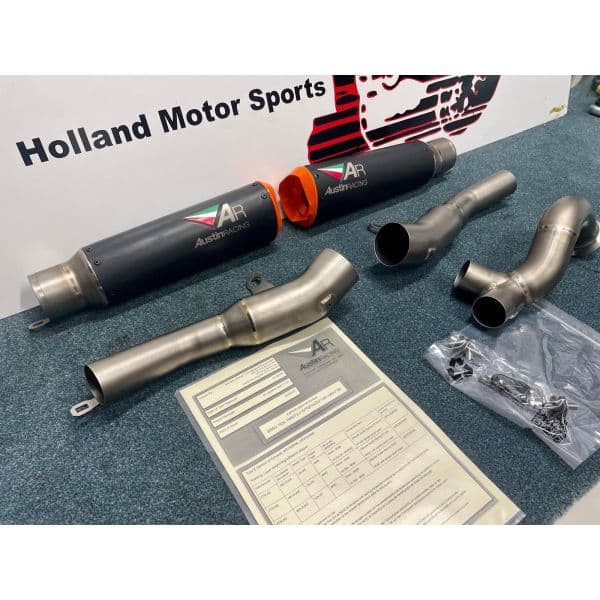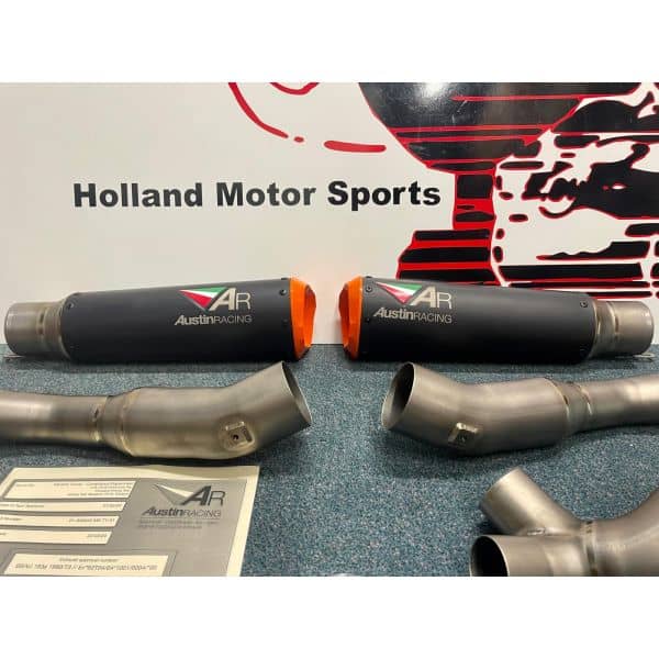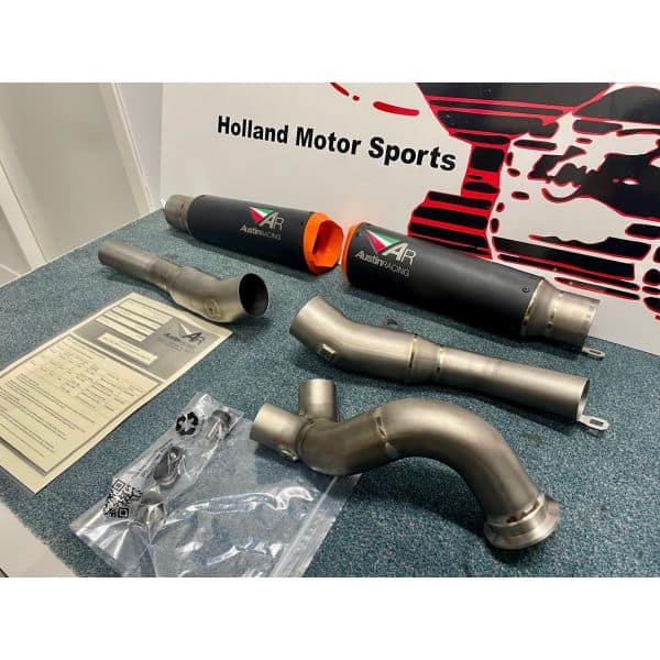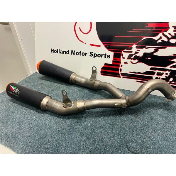 RS22-V is a 250mm twin exit system with orange tips. The finish option is black ceramic.