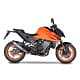 This titanium slip-on, with a carbon heat shield and carbon end cap, with its super-aggressive design, reduces weight by more than 50% compared to the original and perfectly complements the angular lines of the Duke 990 with a captivating sound in compliance with Euro5 regulations. The perfect solution to add personality and a racing touch with a high-quality Made in Italy detail.