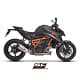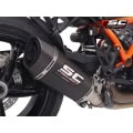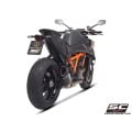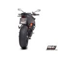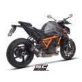 To allow you to enjoy every beat of the biggest twin cylinder on the market, we developed a specific version of our most technologically advanced product: the SC1-R slip-on muffler. For the KTM 1390 Super Duke R, the SC1-R allows a sensible weight reduction of over -30% (-1.0 kg if compared to the OEM exhaust) and to get an incredible maximum gain of 2.0 hp at 7900 rpm and 1.9 Nm of torque at 7900 rpm, together with a stable improvement of power and torque delivery in the low and mid range. For the KTM 1390 Super Duke R, this exhaust comes in Euro 5+ compliant version: everything has been developed to offer a superb sound experience in full compliance for street legal use. Everything about this silencer has been made to offer the highest quality and performance experience: the best materials with advanced production process like handcrafted TIG weldings, sound-absorbing material resistant to very high temperatures, the asymmetrical outlet obtained with hydroforming technology and finally the unique and sporty carbon fibre end cap. 100% Made in Italy technology and design make this silencer the top quality level of SC-Project products range. The SC1-R muffler is a real piece of art The silencer’s body is available in two options: high quality carbon fibre or ultralight titanium. Both versions are enriched by a precious aluminium riveted plate, the same used for the exhausts made by SC-Project Reparto Corse. The kit is completely plug and play and it is enriched by a specific high quality carbon fibre heat shield. ECU remapping is not necessary.