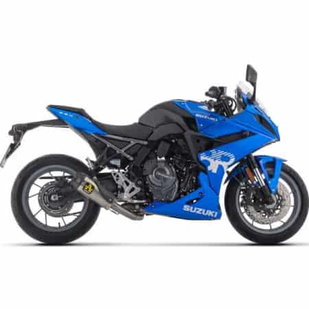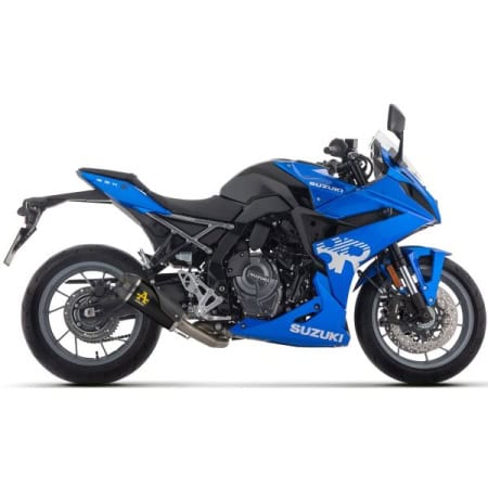 If features plug-and-play installation with no remapping required. Focus was placed on optimal throttle response and performance during development, which has resulted in a power increase of 1.8 kW (2.5 hp) at 9,500 rpm and a torque boost of 1.4 Nm at 5,500 rpm when compared to a Suzuki GSX-8S with a standard stock exhaust system and tested on the Akrapovič in-house dyno. Weight is reduced by 29.1% (2.2 kg) compared to the standard stock exhaust system. Delivering a deep and sporty sound, this full system is EC/ECE type approved and Euro 5+ compliant. It has been designed so that it can also be mounted in combination with the original Suzuki soft sided case set.
