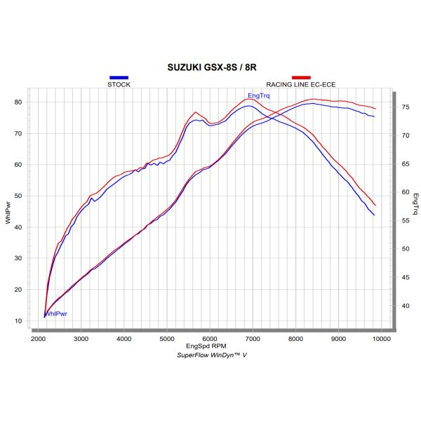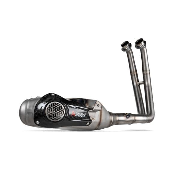 If features plug-and-play installation with no remapping required. Focus was placed on optimal throttle response and performance during development, which has resulted in a power increase of 1.8 kW (2.5 hp) at 9,500 rpm and a torque boost of 1.4 Nm at 5,500 rpm when compared to a Suzuki GSX-8S with a standard stock exhaust system and tested on the Akrapovič in-house dyno. Weight is reduced by 29.1% (2.2 kg) compared to the standard stock exhaust system. Delivering a deep and sporty sound, this full system is EC/ECE type approved and Euro 5+ compliant. It has been designed so that it can also be mounted in combination with the original Suzuki soft sided case set.