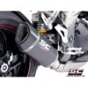 The asymmetric and clean rhomboidal shape, together with the matt carbon fiber end cap, recalls the sporting spirit of the SC1-R confirming it as the ideal muffler for the latest modern bikes.
