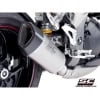 The asymmetric and clean rhomboidal shape, together with the matt carbon fiber end cap, recalls the sporting spirit of the SC1-R confirming it as the ideal muffler for the latest modern bikes.