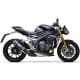 The Twin CR-T, derived from the iconic Moto 2 exhaust, is available in titanium or carbon fiber. Designed and developed to give a sporty character to your Triumph Speed Triple 1200 RS. A deep and dark sound, unique in the panorama of aftermarket silencers. The Twin CR-T combines its racing look with some first class technical and aesthetic solutions: the use of materials derived from the aeronautical industry, such as titanium or carbon fiber with dedicated treatment to withstand very high temperatures and welding of the bracket and fitting with TIG technology, make it the perfect silencer to enhance the line of your bike.