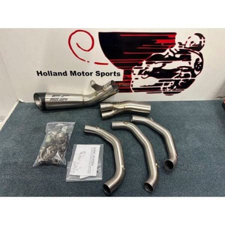 Choose your favorite slip on configuration to be matched with the complete Y13209410I stainless steel racing collectors and with slip on link pipe Y13309430I.