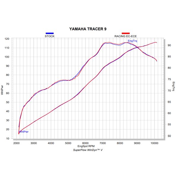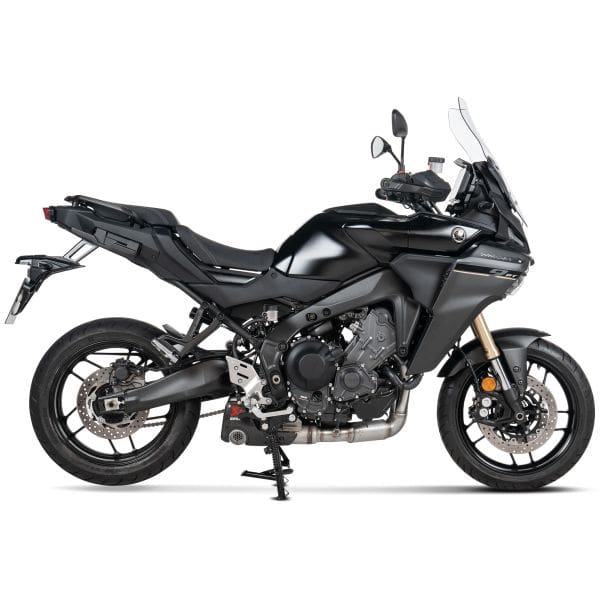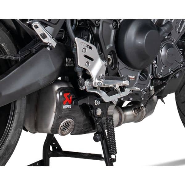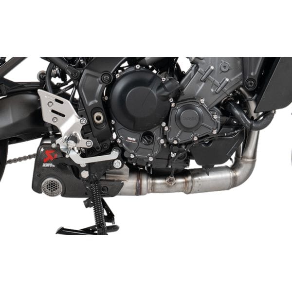 If features plug-and-play installation with no remapping required. Focus was placed on optimal throttle response and performance during development, which has resulted in a power increase of 0.3 kW (0.4 hp) at 8,000 rpm and a torque boost of 0.7 Nm at 8,000 rpm when compared to a Yamaha Tracer 9 with a standard stock exhaust system and tested on the Akrapovič in-house dyno. Weight is reduced by 13.2% (1.0 kg) compared to the standard stock exhaust system. Delivering a deep and sporty sound, this full system is EC/ECE type approved and Euro 5+ compliant.