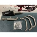 Dit uitlaatsysteem heeft een aluminium zwarte eind demper met een carbon eind kap.