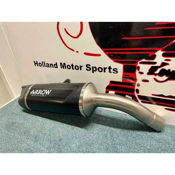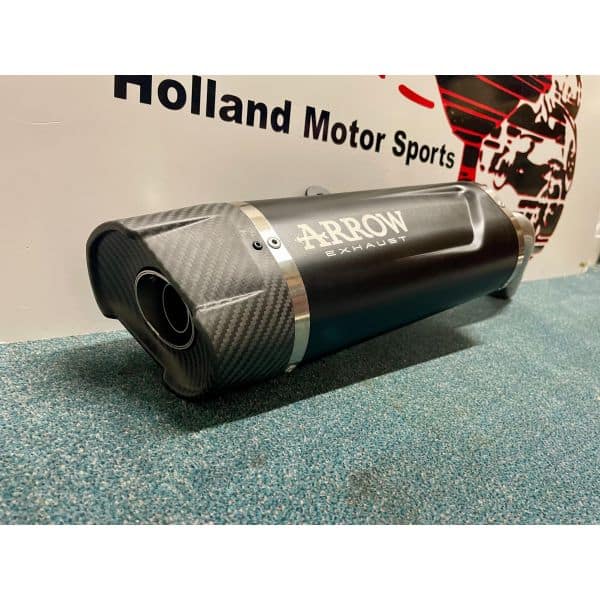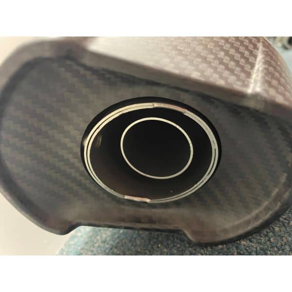 Dit uitlaatsysteem heeft een aluminium zwarte eind demper met een carbon eind kap.