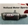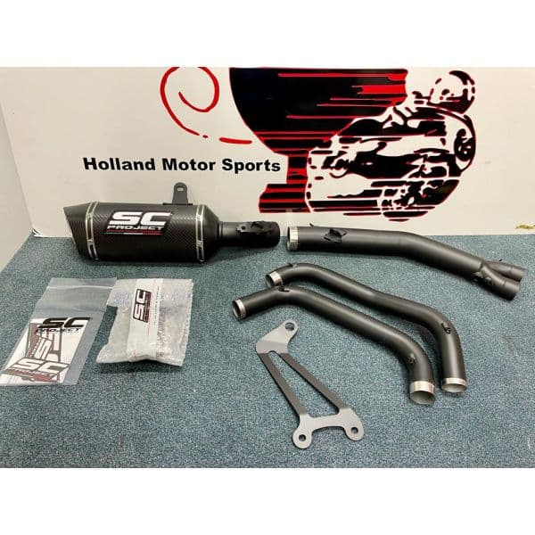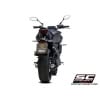The removal of the original catalyst allows an important reduction of both the operating temperature and the motorcycle weight. The muffler chosen to combine with this exhaust system is the SC1-S: carbon fiber made body and end cap plus riveted plate with SC-Project logo.
