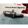Bij dit rvs zwarte uitlaatsysteem zit een carbon hitteschild.