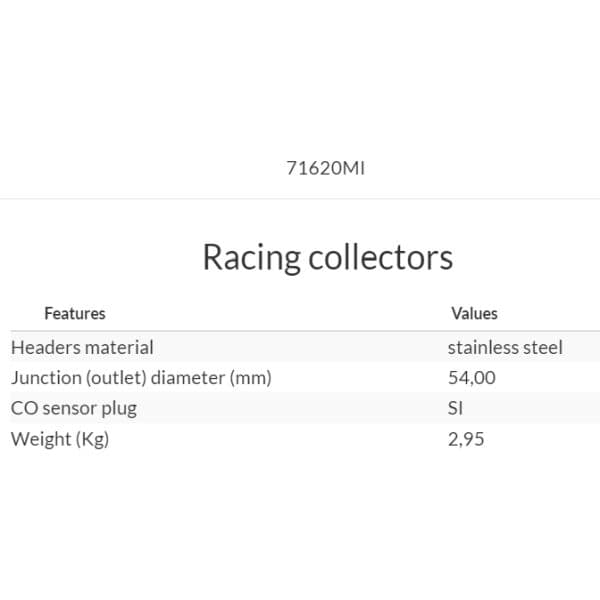 Het bochtensysteem zonder katalysator 71620MI is niet goedgekeurd