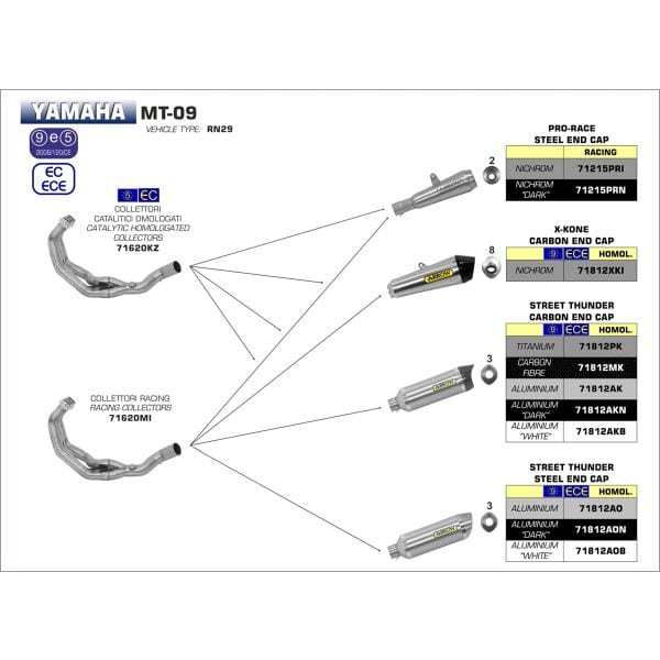 De demper komt met het nieuwe Arrow logo zoals is te zien op de eerste foto met een gele A met zwarte achtergrond. - Er is keuze uit twee RVS bochtensystemen met en zonder katalysator.