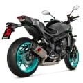 The new design features a shorter muffler for an enhanced sporty look, which exits on the side of the bike for visual impact. Power is increased by 1.5 kW (2.0 hp) at 10,000 rpm and torque is up by 1.3 Nm at 9,700 rpm when compared in back-to-back tests on a Tracer 9 with a Racing Line (Titanium) exhaust and with a standard stock exhaust system. It creates a deep and intense sound.
