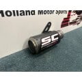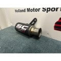 Op de link pipe zit een carbon hitteschild van SC Project.