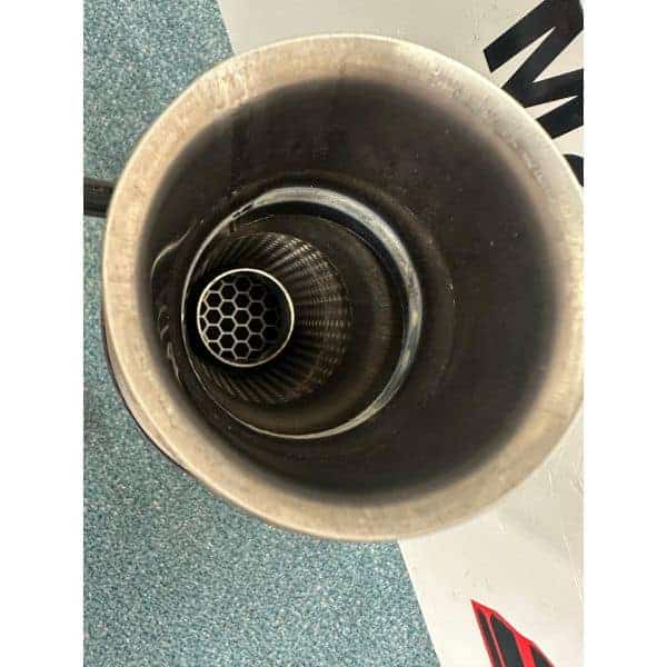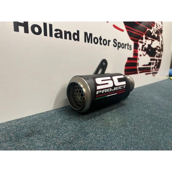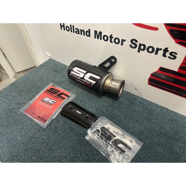Op de link pipe zit een carbon hitteschild van SC Project.