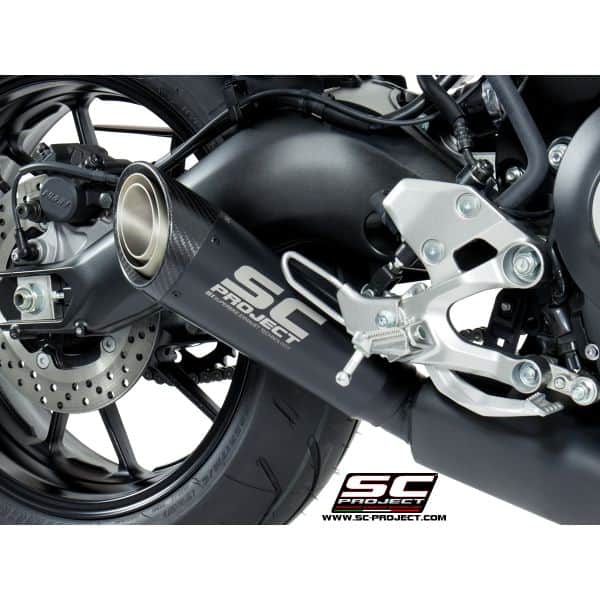 SC-Project, with the aim of improving performance and aesthetics of the standard motorbike, has created a complete unit designed to house the original lambda probe, showcases first-class technical solutions: the use of CNC machined bushings turned from solid allow the exhaust system impeccable coupling that make fitting easier and improve system performance; the implementation of a lighter system ensures better bike rideability; the production of pipes of variable dimensions guarantees a marked increase in performance both in terms of torque and maximum power through the entire bend.