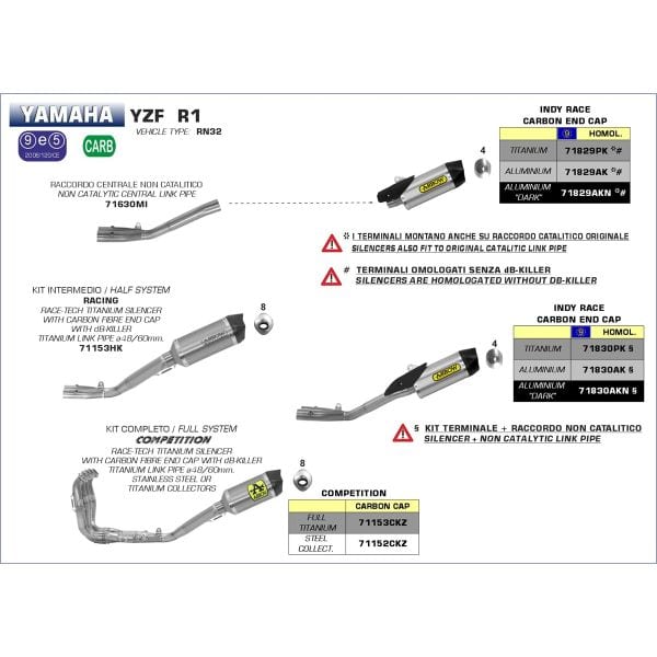 Arrow uitlaat voor de volgende Yamaha modellen: