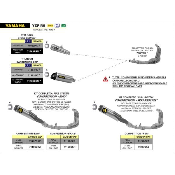 Yamaha YZF R6 2017 tot heden Arrow Competition EVO 2 uitlaatsysteem.