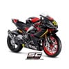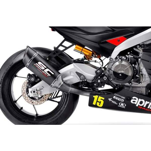 SC-Project, with the aim of improving performance and aesthetics of the Aprilia RS 660 has created a complete unit designed to house the original lambda probe, showcases first-class technical solutions: the use of CNC machined bushings turned from solid allow the exhaust system impeccable coupling that make fitting easier and improve system performance. The implementation of a lighter system ensures better bike rideability. The production of pipes of variable dimensions guarantees a marked increase in performance both in terms of torque and maximum power through the entire bend. The removal of the original catalyst means a significant operating temperature reduction as well as a dark and deep sound, the real SC-Project hallmark.