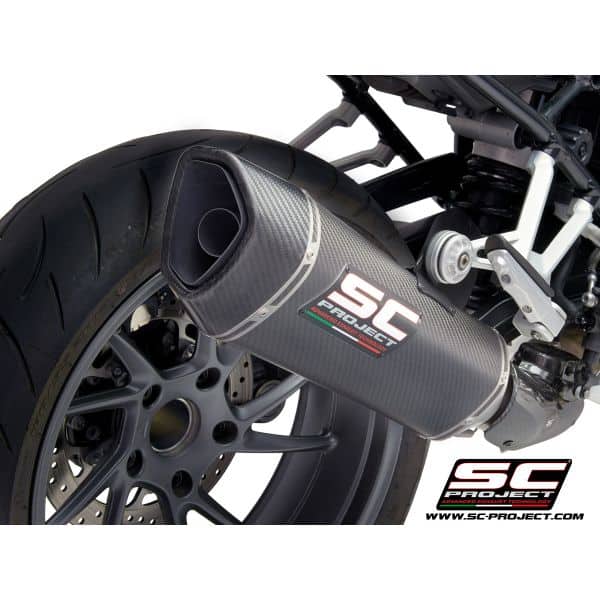 The mufflerSC1-Ris created and developed by the experience of the SC-Project racing department in the most important WorldCompetitions. A look with taut and decided lines will enrich Your Bike making it unique and exclusive. The exit pipe obtained by hydroforming and the carbon fiber end cap from the rhomboidal asymmetric shape make inimitable the silencer SC1-R. The lightweight outer body is available in both Titanium and Carbon version. The weldings with T.I.G., the sound-absorbing material resistant to very high temperatures and the insert bushings made in CNC machining embellish the SC1-R silencer. In the version with Titanium body the R&D department of SC-Project wanted to make the SC1-R more elegant by imprinting the Logo by laser, without distorting the look, while in the Carbon version, on the silencer is riveted an insert with the SC-Project logo as in the versions of our mufflers used in Competitions. Carbon heat protection included in the kit.