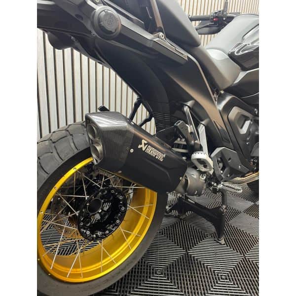 Developed exclusively for the BMW R 1300 GS from years of experience working with the BMW GS range and its boxer engines. A double flow muffler constructed from lightweight titanium and a handmade carbon-fibre end cap gives a weight saving of 9.3% over standard stock.