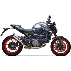The S1 muffler represents for SC-Project the perfect combination of lightness and performance without compromise. Its conical shape with taut and essential lines make the S1 silencer fascinating giving outburst to your Ducati Monster 937. Born from the experience of the racing department on the circuits of the WSBK Championship, the silencer has a titanium body with carbon end cap with a special sound-absorbing material that resists high temperatures. To make it unique and unmistakable our technicians have used the best production processes: brackets and fittings welded with T.I.G. technology, the insert bushings in titanium made in CNC and lasered Logo. From the high and powerful sound the S1 silencer will make the sound of your moto unique.