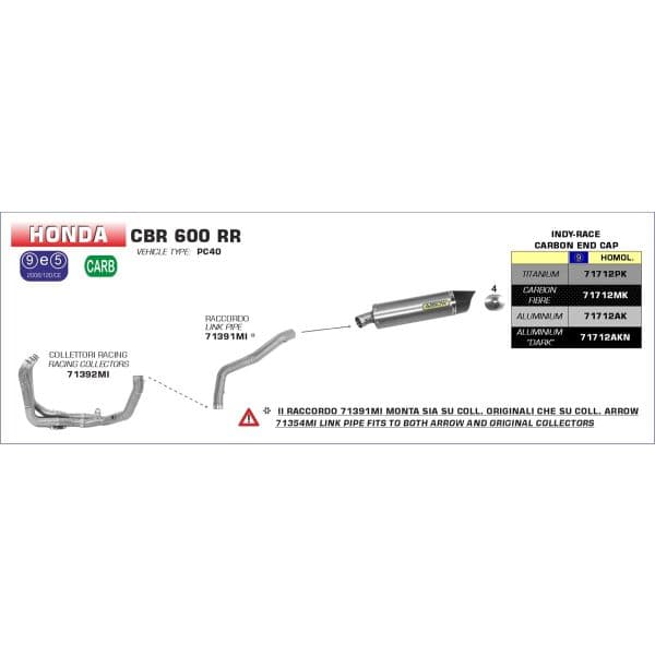 Indy-Race Arrow exhaust carbon end cap + rvs link pipe 71391MI-71712MK .