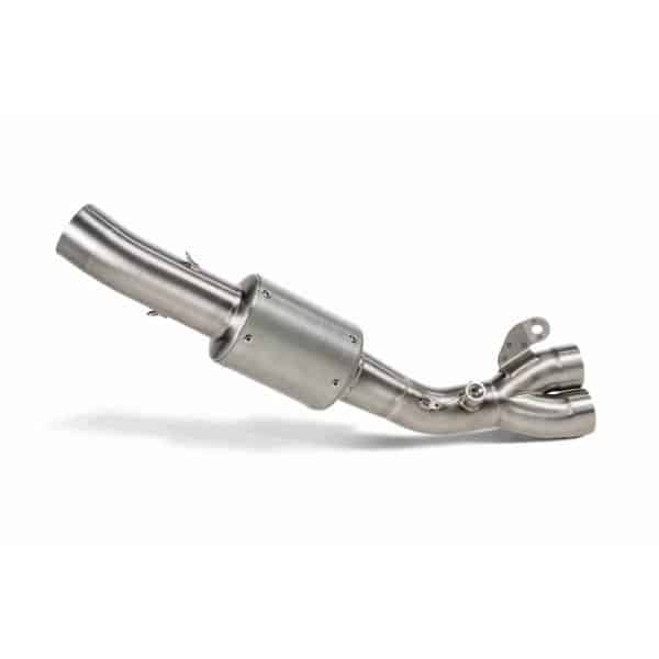 Optional stainless steel link pipe with resonator for mounting with the muffler and header set from the Evolution Line S-H10E4-APLT or Racing LineS-H10R10-APLT. It lowers the noise levels for use on racetracks where lower noise levels are required.
