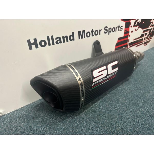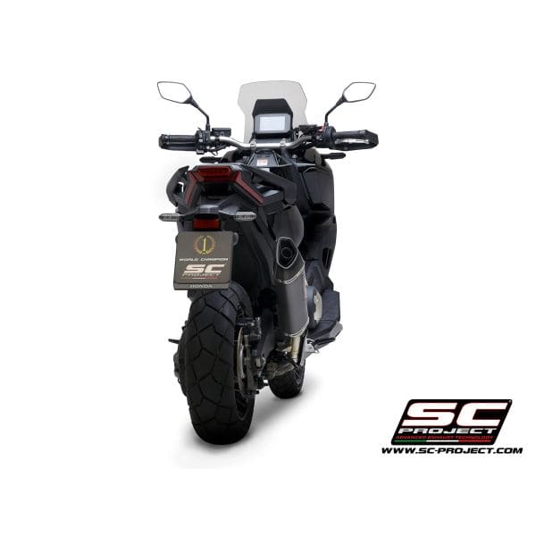 The muffler SC1-R is created and developed by the experience of the SC-Project racing department in the most important World Competitions. A look with taut and decided lines will enrich Your Honda X-Adv 750 making it unique and exclusive. The exit pipe obtained by hydroforming and the carbon fiber end cap from the rhomboidal asymmetric shape make inimitable the silencer SC1-R. The lightweight outer body is available in both Titanium and Carbon version. The weldings with T.I.G., the sound-absorbing material resistant to very high temperatures and the insert bushings made in CNC machining embellish the SC1-R silencer. In the version with Titanium body the R&D department of SC-Project wanted to make the SC1-R more elegant by imprinting the Logo by laser, without distorting the look, while in the Carbon version, on the silencer is applied an insert with the SC-Project logo as in the versions of our mufflers used in Competitions. The entire system can be further improved with the addition of a carbon fiber protection made in the autoclave included in the kit.