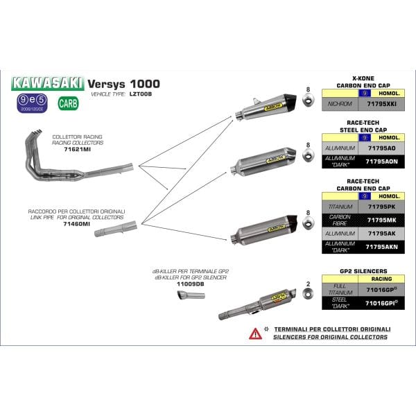 Kawasaki Versys 1000 Arrow exhaust 71795AKN 71460MI