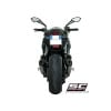 The S1 muffler, a benchmark for the Superbike World Championship, is available with a titanium tapered body andmatt carbon fibre end cap and, depending on the model of motorcycle, with the spectacular titanium flame arrester on the output.