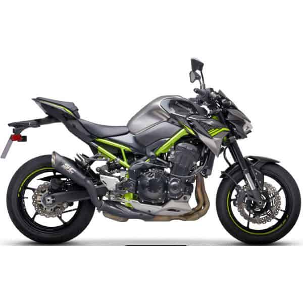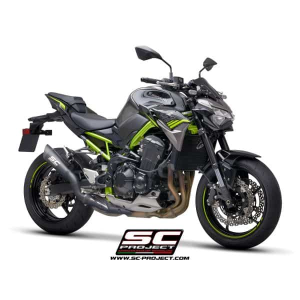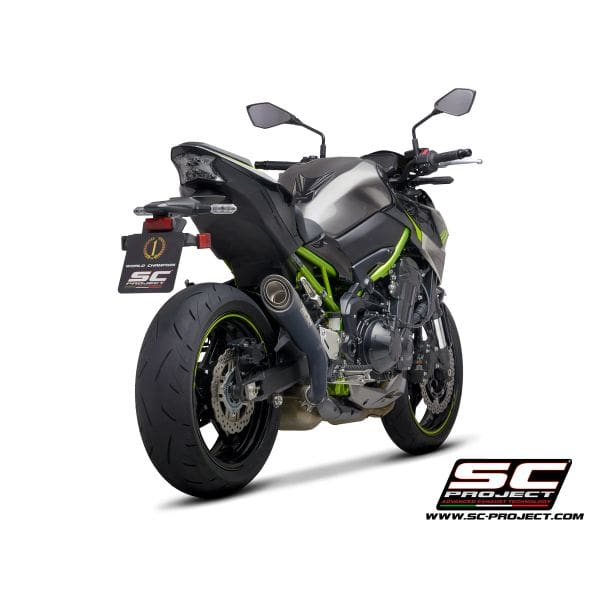 The S1 muffler, born directly from Superbike racing, is built with a conical titanium body and a matt carbon fibre end cap, welded to the all-titanium manifold specially created to be mounted on the Kawasaki Z900. Its slim shape highlights the muscles of the green Kawasaki. The sound generated on the Kawasaki four-cylinder is particularly sharp and engaging. The silencer is EURO4 approved. It comes with a large autoclave made carbon protection, which completely replaces the original. It can also be supplied painted matt black with special heat-resistant ceramic paints.