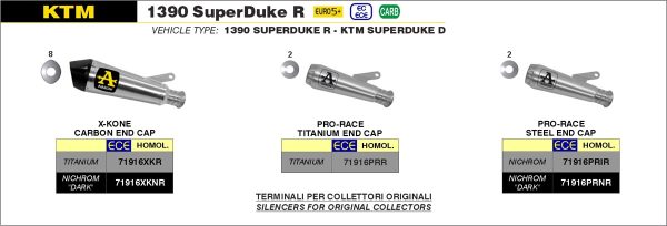 KTM 1290 and 1390 SuperDuke R / RR / EVO 2020 to present Arrow exhaust. Pro-Race Nichrom damper 71916PRIR.