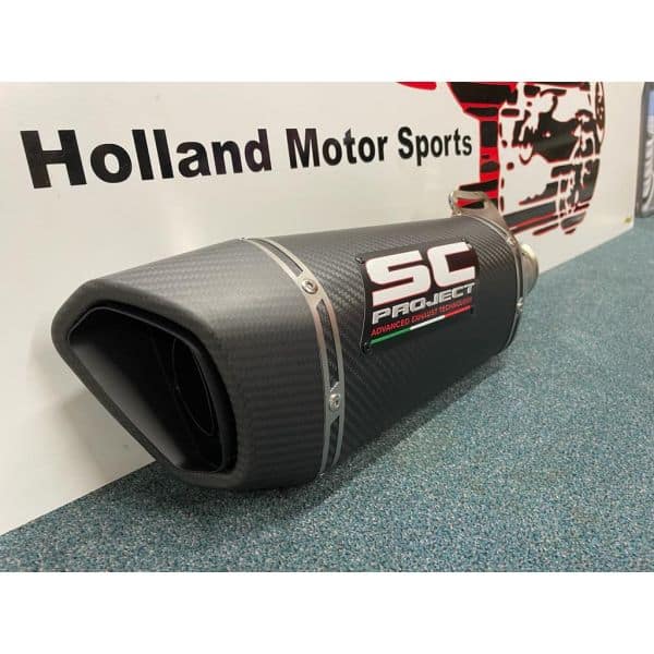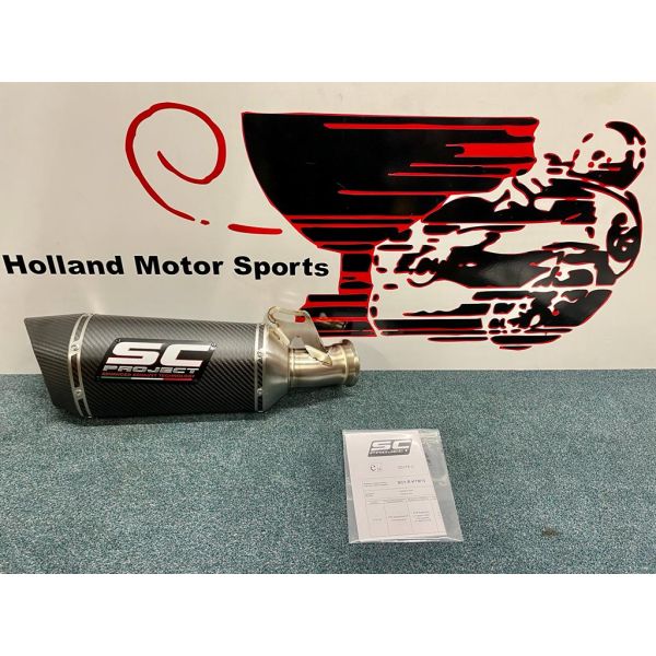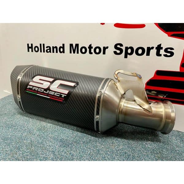 The asymmetric and clean rhomboidal shape, together with the matt carbon fiber end cap, recalls the sporting spirit of the SC1-R confirming it as the ideal muffler for the latest modern bikes.