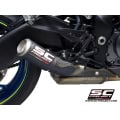 The CR-T muffler is the the unmistakable signature of the Racing style of SC-Project. Multiple Moto2 World Champion was created to satisfy the best Teams and Riders. Designed and developed to give a sporty and racing character to your Suzuki GSX-S1000 with a deep and dark Sound is unique in the aftermarket silencer panorama. The iconic muffler is available in variants Titanium or Carbon with Titanium mesh on exit muffler. To achieve the best performance the CR-T is built with materials derived from the aeronautical industry, such as Titanium or Carbon fiber with dedicated treatment to withstand the highest temperatures. Bracket welding and fitting with T.I.G. technology.