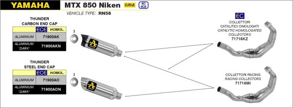At the Arrow collectors you can choose between EU approved collectors (with catalytic converter) or racing (without catalytic converter)