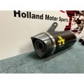 The system has a black aluminum silencer with carbon end cap, this silencer is EU approved and has an easily removable dB killer.