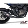 A strong and deep sound is obtained with the use of a carbon made SC1-S muffler, with riveted SC-Project logo, strong, lightweight and in line with the spirit of this bike model.