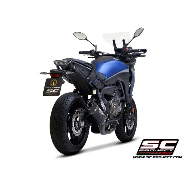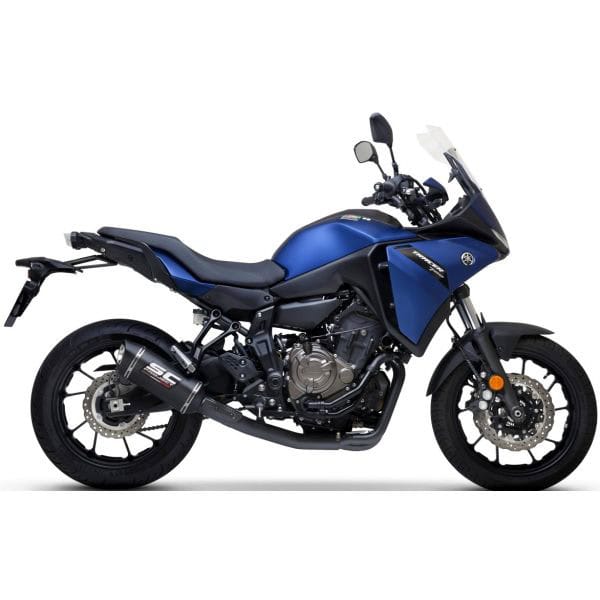 The sporty character and the elegance of black meet in this full system designed for the 2021 model of the Yamaha Tracer 7.
